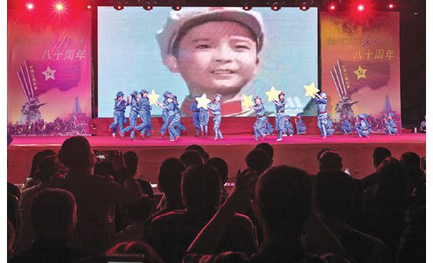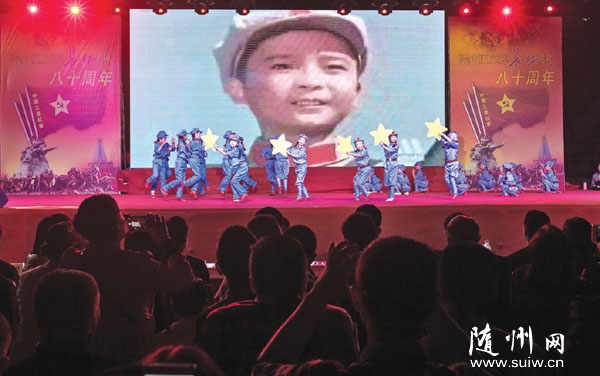 隨州網(wǎng)訊 9月29日,隨州市舉行紀(jì)念中國(guó)工農(nóng)紅軍長(zhǎng)征勝利80周年文藝晚會(huì),市領(lǐng)導(dǎo)郭永紅、蔣星華、林常倫、甘國(guó)棟、王志勇、劉文軍、羅國(guó)銀和市民群眾一起觀看了演出,圖為舞蹈《閃閃的紅星》。 (記者 徐斌 攝) |
