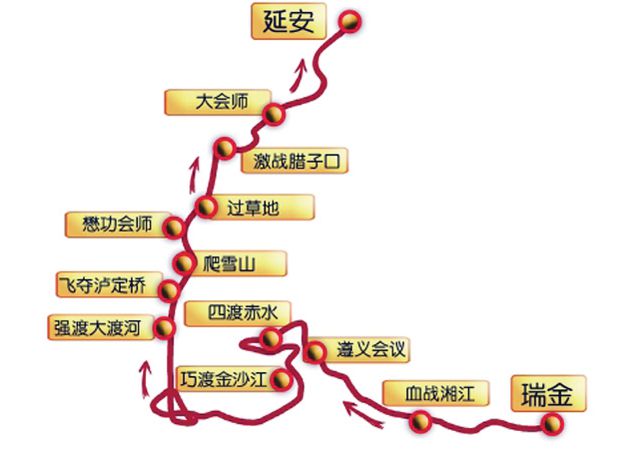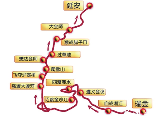 ●時間1934年10月10日-1936年10月22日 ●中央紅軍(紅一方面軍)途經11省 1934年10月10日,中共中央、中革軍委率領中央紅軍第1、第3、第5、第8、第9軍團,以及中央縱隊和軍委縱隊共8.6萬余人,從江西瑞金等地出發,開始長征。經粵北、湘南、桂北、黔北、川南等地區,一路西行,在滇北的皎平渡等地渡金沙江北上。1935年6月,與紅四方面軍在四川懋功(今小金)會師。 10月19日,紅軍到達陜甘蘇區的吳起鎮 (今吳起縣城),勝利結束長征。一路上,他們途經江西、福建、廣東、湖南、廣西、貴州、云南、四川、西康、甘肅、陜西等11個省,行程二萬五千里。 ●紅二方面軍途經9省 1935年11月19日,紅2、紅6軍團共1.7萬余人從湖南省桑植縣劉家坪等地出發,退出湘鄂川黔蘇區,開始長征。他們經湘中、湘南,西入貴州,進入滇北,一路西進,在麗江的石鼓、巨甸等處渡金沙江北上。1936年7月,他們在西康甘孜與紅四方面軍會師,并正式建立紅二方面軍,全軍共1.3萬余人。 隨即,他們與紅四方面軍共同北上,經青海東部、四川北部進入甘南,10月22日在甘肅靜寧以北的將臺堡(今屬寧夏西吉)與紅一方面軍會師。一路上,他們途經湖南、湖北、貴州、云南、西康、四川、甘肅、青海、陜西等9個省,行程二萬余里。 ●紅四方面軍途經4省 1935年3月初,紅四方面軍、地方武裝和蘇區機關人員共約10萬人,離開川陜蘇區,開始長征。6月與紅一方面軍在懋功會師。 1936年7月,紅四方面軍與紅二方面軍共同北上。10月9日,他們到達甘肅會寧,與紅一方面軍會師,勝利結束長征。途經四川、西康、青海、甘肅等4省,行程達一萬余里。 ●紅25軍途經4省 1934年11月16日,鄂豫皖蘇區的紅軍第25軍2900余人,根據中共中央指示,從河南省羅山縣何家沖出發,向平漢鐵路(今北京—漢口)以西轉移,開始長征。1935年1月至5月粉碎國民黨軍兩次“圍剿”,創建了鄂豫陜蘇區,部隊發展到3700余人。 1935年7月16日,為配合紅一、紅四方面軍北上,紅25軍再次從鄂豫陜蘇區出發,經縣(今戶縣)、 (今周至)西進,繼續長征。經過陜南、甘南地區,他們于9月15日到達陜甘蘇區的永坪鎮,次日同西北紅軍第26、第27軍會師,勝利結束長征。一路上,他們途經河南、湖北、陜西、甘肅等4省,行程近萬里。 |