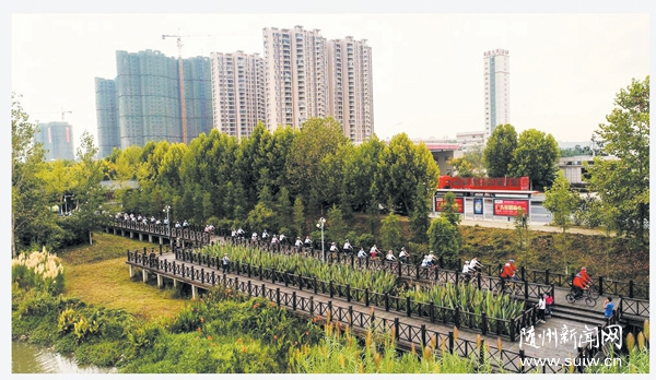 隨州新聞網(wǎng)訊 清晨,一群人沿著隨城白云湖邊騎行,穿行在湖光美景中,盡享城市發(fā)展帶來的高品質(zhì)生活。(隨州日報(bào)全媒體記者 李文軍攝) |