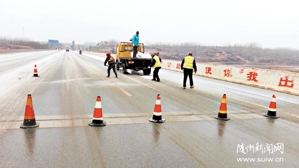 隨州新聞網訊 連日來,氣溫突降,道路結冰,給返程客流帶來不便和安全隱患。曾都公路局迅速行動,多措并舉,除冰雪、清路障,保障公路暢通和市民出行安全。(隨州日報全媒體記者唐天才、通訊員孫東攝)