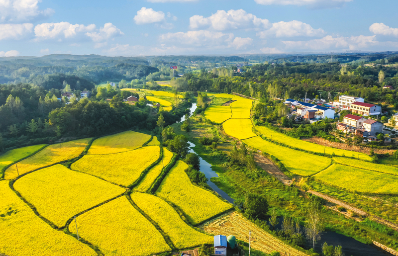 金秋時節,隨州大地一片豐收在望景象。圖為曾都區何店鎮的一片片金黃的稻田。(隨州日報全媒記者李文軍、通訊員韓起璞攝)