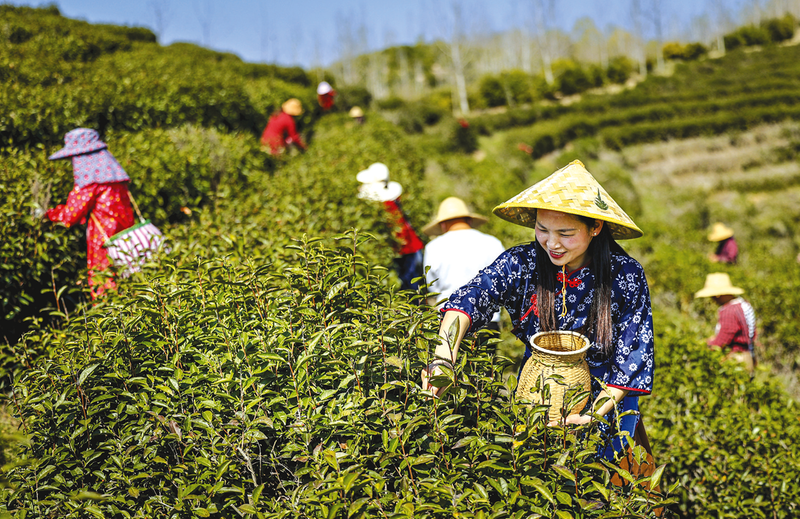 隨著氣溫回暖,我市進(jìn)入新茶采摘季。圖為隨縣洪山鎮(zhèn)云峰山茶場(chǎng)采茶女工熟練采摘嫩綠新芽。