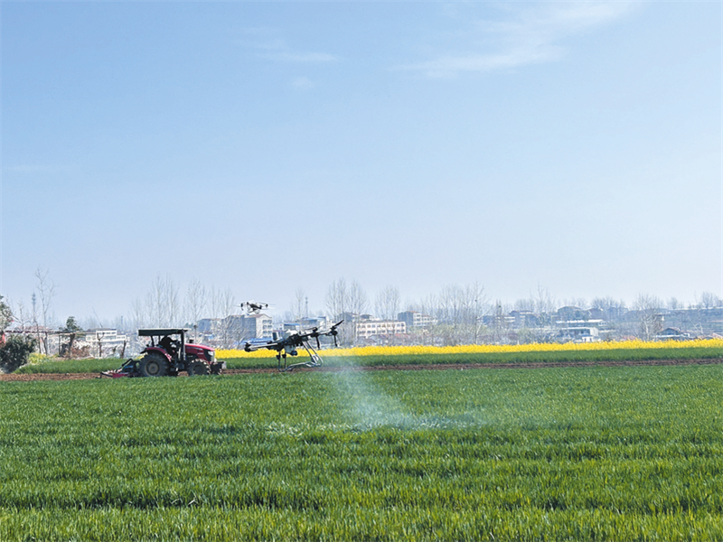 隨縣萬福店農場鳳凰山村“一噴三防”現場。(隨州日報全媒記者滕銳攝)