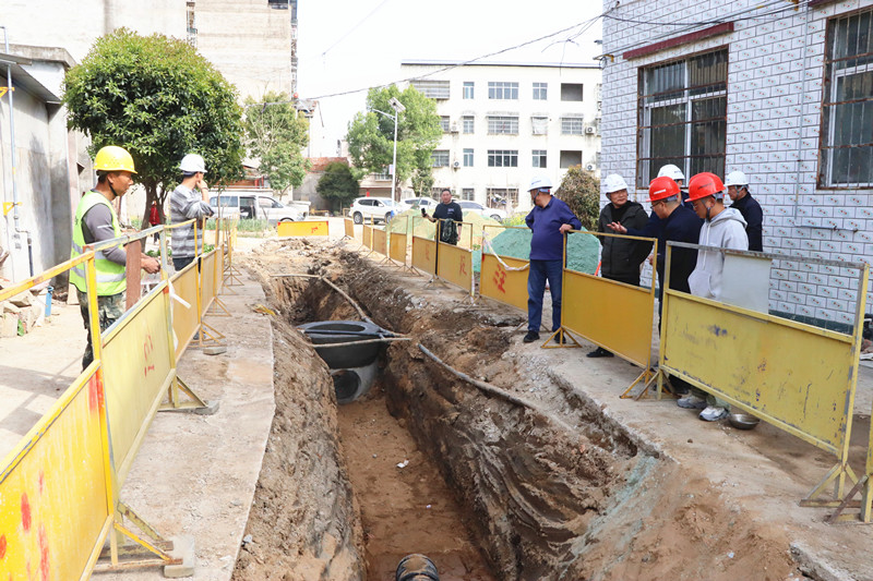 在隨州高新區公共配套基礎設施補短板工程項目——65公里長的淅河片區污水管網改造現場,工人正在鋪設污水管網,檢查組一行詳細了解項目建設進展情況,查閱了應急管理預案、安全教育培訓記錄和日常管理資料,提醒施工單位做好現場安全管理,加強節假日期間的值班值守,確保施工安全萬無一失。
