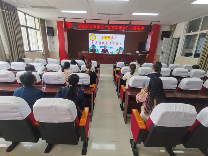 歲豐學校校長吳濤向家長代表們介紹了學校基本情況、教學特色、教育成果以及學校在提升服務質量和確保食品安全方面的努力,并強調學校將一直秉承“用心做事,用情服務”的態度為學生提供健康、安全的就餐環境。吳校長希望家長積極支持學校工作,加強溝通,共同監督,關注學生健康飲食習慣的培養,以確保學生的飲食健康和營養均衡。