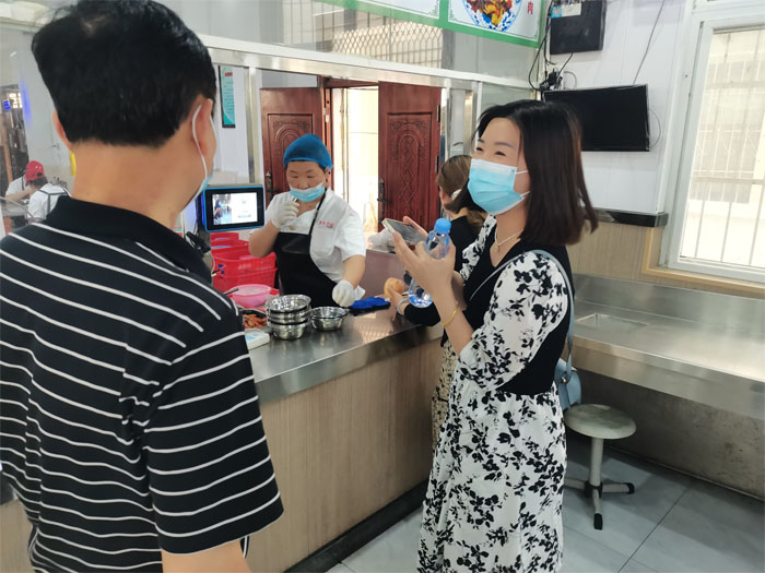 分管后勤工作的負責同志向家長們詳細介紹數字食堂,實現了管理透明化、操作標準化,家長可隨時通過大屏查看菜譜與食材信息,最終實現服務師生、規范流程、管控風險“三位一體”的目標。