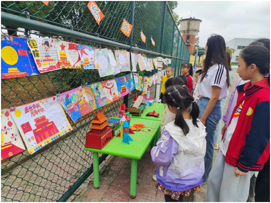 10月9日返校后,學校對假期作品進行了集中評比與展示。運動場上,優秀的手工作品、書法和繪畫作品構成了一道亮麗的風景線。展覽現場贊嘆聲不絕于耳,同學們駐足于一件件精美的作品前,在交流與欣賞中,共享實踐的收獲,感受創作的魅力。