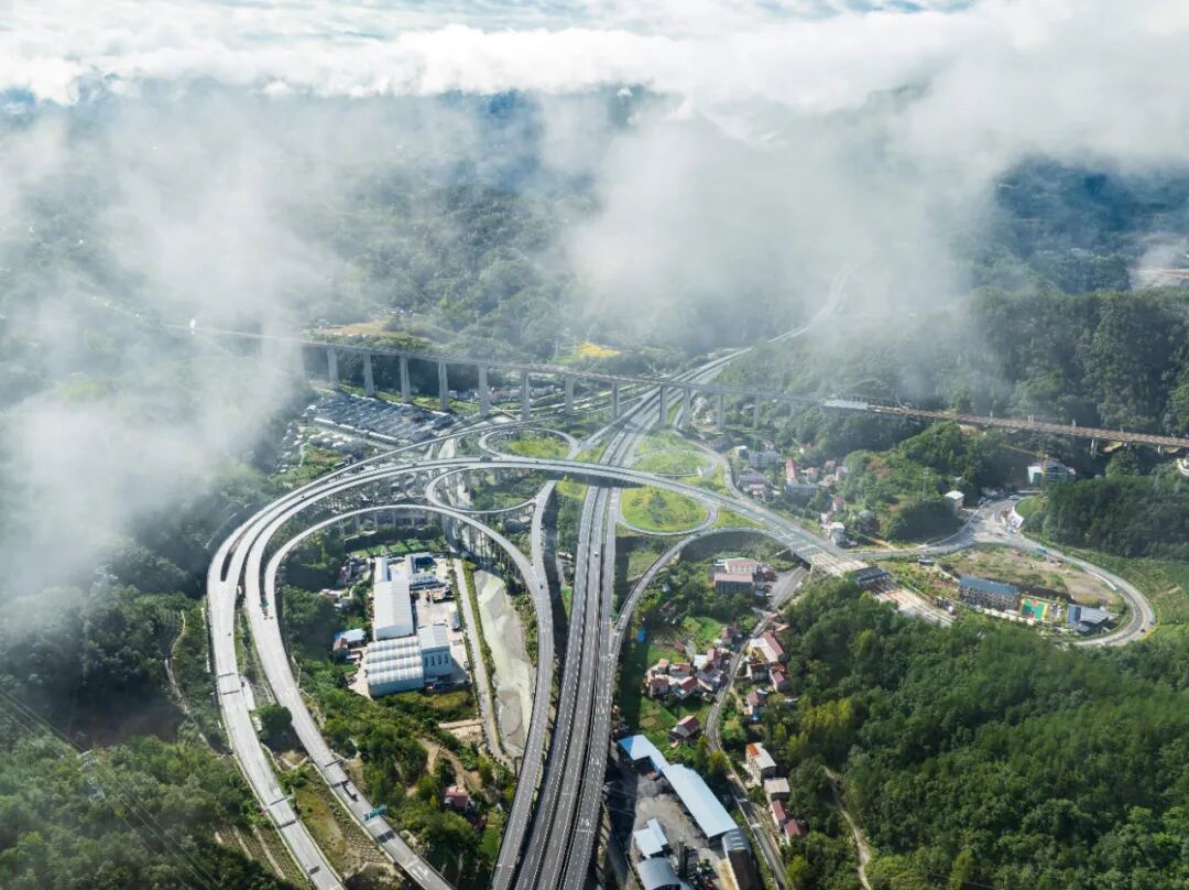 雨后初晴,在保神高速與呼北高速交會處的后坪互通樞紐周邊,青山、云霧與縱橫的路網相映,宛如仙境。保神高速公路五道峽收費站車流不息,小汽車、客車、貨車等往來穿梭,一派繁忙景象。