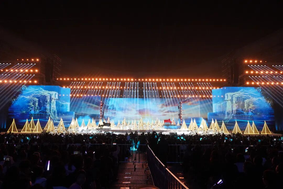 現(xiàn)場以“高峽出平湖 光影綻未來”核心理念、三峽大壩為原型,構(gòu)建了總跨度達150米的巨型舞臺。“正值中國電影誕生120年,我們希望借這場設(shè)計與創(chuàng)意,展現(xiàn)中國電影如長江般的蓄勢與奔流。”舞美總設(shè)計鄭博道出初心。