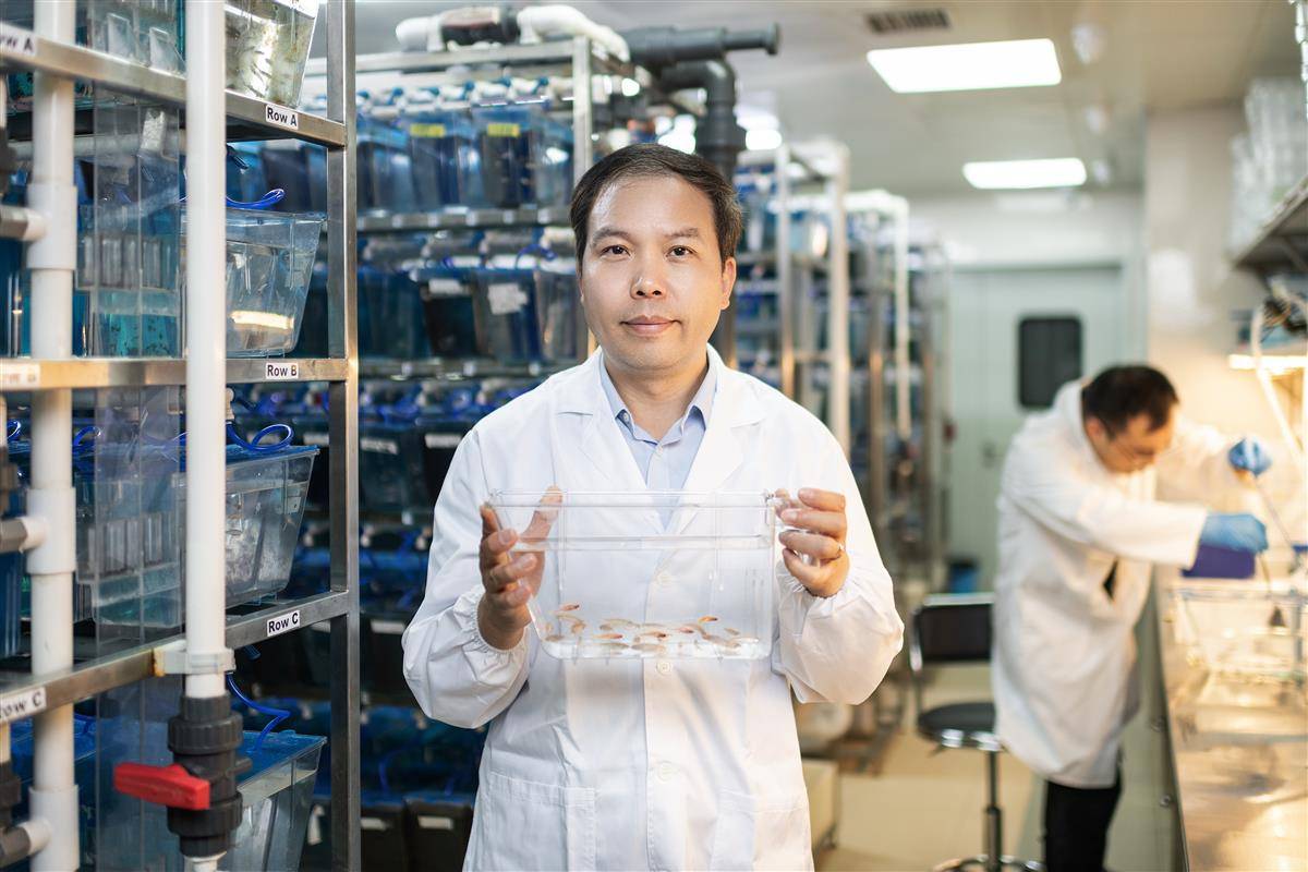 中國(guó)科學(xué)院水生所國(guó)家斑馬魚(yú)資源中心主任孫永華研究員在魚(yú)房?jī)?nèi)展示斑馬魚(yú)樣本。(湖北日?qǐng)?bào)全媒記者 任勇 攝)