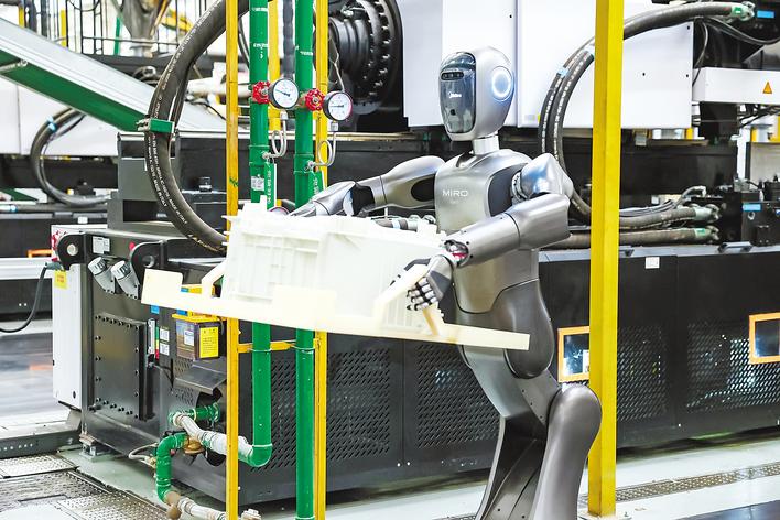 8月26日,經權威機構認證,美的洗衣機荊州工廠成為全球首個智能體工廠。這是人形機器人正在作業中。 (受訪單位供圖)