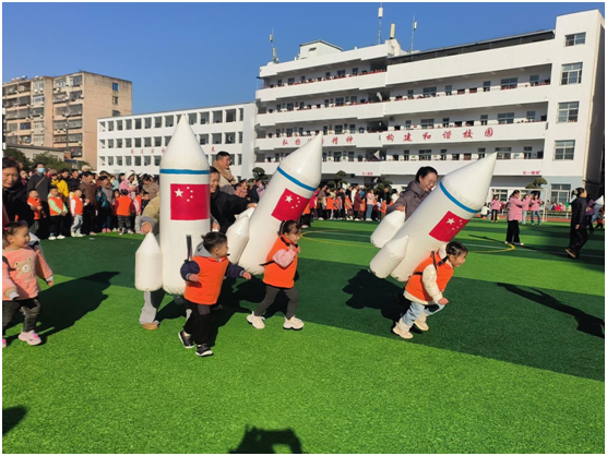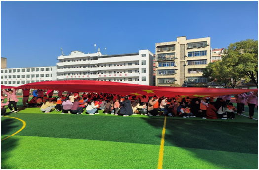 最后的“星球大戰”與“歌唱祖國”環節最為感人。在“星球”傳遞中,家長與孩子緊密相依,共同完成任務;而當巨幅國旗在全體參與者的頭頂上緩緩展開,大家齊聲高唱《歌唱祖國》,鏗鏘的旋律回蕩在校園上空,愛國情懷在每個人心中激蕩。