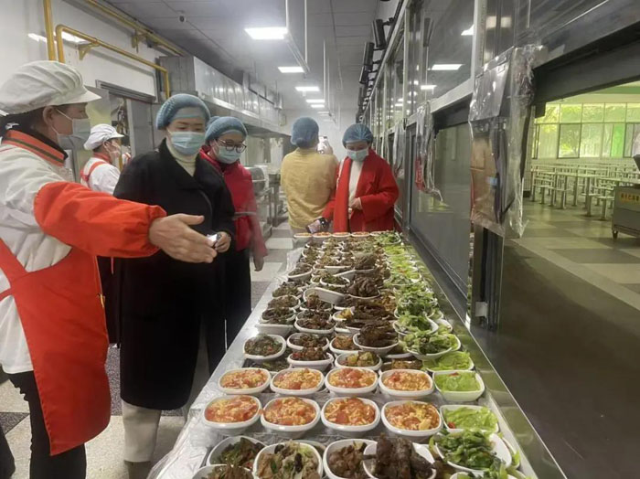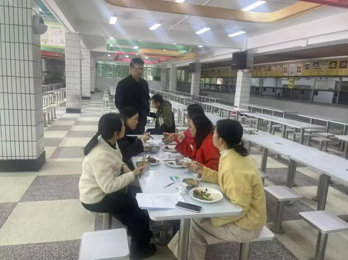 隨后,在食堂工作人員的引導下,家長們實地走訪了后廚操作區,仔細查看了食材儲存、餐品制作等環節,并親身體驗了學生餐品。午餐時分,家長們還走進就餐區,親切詢問學生的用餐感受,細致了解他們的就餐體驗。