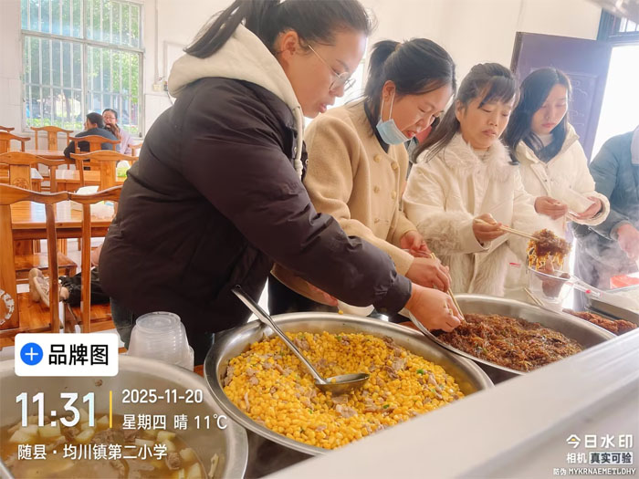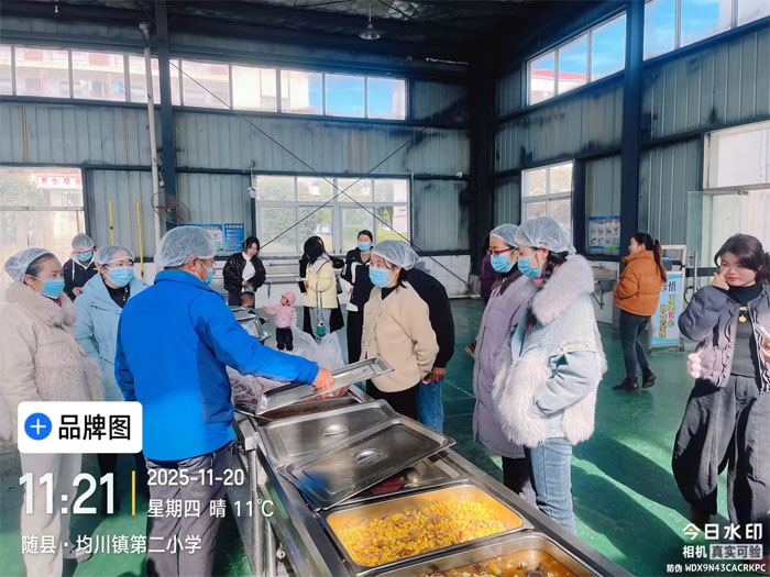 隨州新聞網(wǎng)訊 (通訊員劉 升、胡安元)校園餐食的安全與營養(yǎng),始終是家長心頭的牽掛,也是學校育人工作的重中之重。為構建 “陽光食堂”,深化家校協(xié)同育人,11 月 20 日,均川鎮(zhèn)第二小學以 “家長開放日” 為契機,開展了一場別開生面的家長試餐陪餐活動,邀請30余位家長代表沉浸式參與校園膳食管理,在 “親眼見、親口嘗、親身評” 中,為學生的 “舌尖安全” 畫上一道安心的 “對勾”。