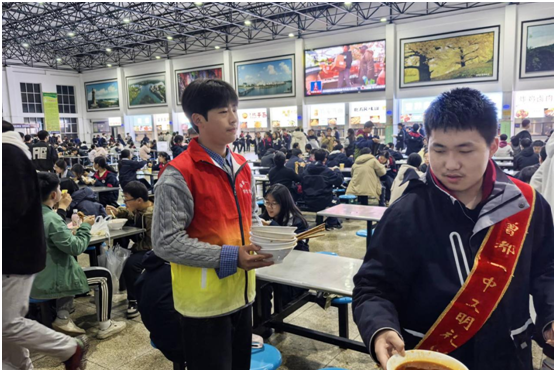 隨州新聞網訊 (通訊員李世軍)“一粥一飯當思來之不易,一言一行皆顯教養本色。”在曾都區第一高級中學,傳統教室構筑的知識殿堂是立德樹人的“第一課堂”,以鳳凰文化為引領、涵蓋文體競技、科技探索、思品德育等多元形式的室外活動是賦能成長的“第二課堂”。如今,每日人聲鼎沸的食堂,正以“第三課堂”的全新姿態,成為連接知識與生活、承載溫度與成長的重要育人陣地,讓教育在煙火氣中蓬勃生長。